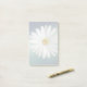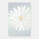 A serene photo of a single delicate with daisy. Soft dainty white petals with a bright yellow center. Le Background c'est le misty greenish blue color.