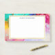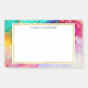 Notes collantes d'orientation paysage avec un design abstrait artistique sophistiqué. Aquarelle peinture avec les couleurs mélangeant et mélangeant créant un motif fluide. Un cadre blanc avec une fausse bordure en feuille d'or superposée avec votre nom personnalisé et l'espace pour écrire vos notes à l'intérieur.