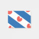 Il se compose de bandes diagonales bleues et blanches ; dans les bandes blanches se trouvent des pompeblêden rouges, feuilles de nénuphar jaune, qui peuvent rappeler des cœurs, mais selon les instructions officielles "ne doivent pas avoir la forme de cœurs".