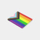 La variante "Progress" du drapeau arc-en-ciel ajoute un chevron le long de l'arbre qui présente des rayures noires, marron, bleu clair, roses et blanches pour amener ces communautés (les personnes marginalisées de couleur, les personnes trans, les personnes vivant avec le VIH/SIDA et celles qui ont été perdues) au premier plan ; "la flèche pointe à droite pour montrer le mouvement, tout en étant le long du bord gauche, montre que des progrès restent à faire."