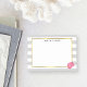 Ces notes pratiques présentent un arrière - plan à rayures blanches et gris pastel chic, une bordure en faux or et une illustration de fleur de pivoine d'aquarelle en rose vif. Customisez avec un monogramme, nom ou texte de votre choix en lettres noires modernes.