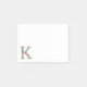 Bloc-notes collant personnalisé comportant une initiale florale de monogramme, lettre "K" avec le nom dessous.