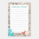 Chaque jour est un "Beach Day" avec ce Post-it® Notes pad. L'arrière - plan de ce design est une plage de sable, recouverte de coquillages. Ce coussinet incliné comporte une goutte d'eau bleu aqua, dans le coin inférieur gauche. Dans le coin inférieur droit, il y a un crabe rouge capricieux avec une coquille de mer.