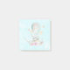 Petites notes collantes carrés avec une charmante illustration d'un petit lapin qui roule le long d'une montgolfière ornée d'un joli ruban rose, agrémentée de fleurs et de papillons. Un arrière - plan pastel bleu aquarelle lui donne une sensation de rêve vintage.