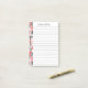 Ce bloc-notes Post-It® est conçu avec un collage de mots "Merci" multilingue rouge et noir dans une variété de styles de caractères le long de la bordure gauche. Remplissez le champ modèle, supprimez le texte ou cliquez sur personnaliser pour modifier le style, la couleur et la taille de la police que vous souhaitez.