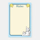 Mignonnes notes avec deux adorables souris blanches en bas à droite. L'un est allongé et l'autre est assis. La zone d'écriture est jaune pastel pâle avec les mots en lettres bleues en haut. De chaque côté du mot notes sont deux étoiles jaunes aux visages heureux. La couleur arrière - plan est un bleu clair bébé avec de minuscules pois blancs.