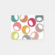 Ce bloc-notes Post-It a un design moderne du milieu du siècle avec des cercles dans les tons rétro de bleu, violet, rose, marron, citron vert et or avec des ovales blanches.