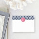 Le design chic Preppy comprend votre monogramme initial unique en rose miel vibrant entouré d'un motif géométrique octogonal en bleu marine et blanc.