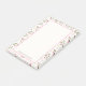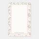 4x6 grandes notes collantes avec votre nom personnalisé à l'intérieur d'un cadre blanc en coquille d'oeuf avec une bordure rose. La toile de fond est un motif de fleurs sauvages roses dessinés à la main avec de longues tiges vertes et des feuilles sur une toile de fond blanche en coquille d'oeuf. Des cercles roses et des sprigs décorent également le design. Design Whimsical et joli à fleurs.