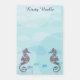 Illustration graphique des hippocampes colorés dans l'océan. Vous pouvez customiser la couleur d'arrière - plan et ajouter le nom ou le message. Chaque protection vient avec 50 notes collantes imprimées dans polychrome. Grande idée de cadeau de vie marine pour quelqu'un spécial.