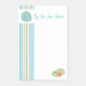Le By the Sea Shore est orné de rayures cool bleues et vertes et d'une coquille bleue. Dans le coin inférieur droit, il y a du corail coloré et une étoile de mer. Le texte "By the Sea Shore" peut être personnalisé avec votre texte.
