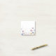 Bringen Sie ein bisschen Garten in Ihre Korrespondenz mit diesen personalisierten Aquarell-Post-it-Notizen. Mit einer zarten Linie handgemalter Blüten am unteren Rand fängt dieses Design das leichte, luftige Gefühl eines Frühlingsmorgens ein.