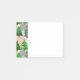 Ce bloc-notes Post-It a un design d'arbres de Noël dans diverses nuances de vert, rose, argent et or avec différentes décorations.