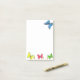 Mignons papillons bleus et jaunes colorés avec des points de confettis à l'apparence métallique or sur l'arrière - plan blanc Post_it Notes.