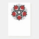Pentagramme noir avec motif, décoré de fleurs, roses rouges avec feuilles sur arrière - plan blanc. Style tatouage.