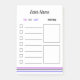 Le design personnalisé chic vous permet de choisir votre nom, le titre de la liste à faire, 7 lignes avec cases à cocher pour vous aider à garder le suivi de toutes vos tâches importantes et 2 cases pour Notes afin de suivre tous les autres commentaires.