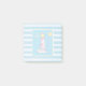 Petites notes collantes carrés avec un thème nautique. Conçu avec un motif rayé bleu et un cadre bleu avec une bordure jaune superposée. Un phare rayé rouge et une boule de plage, un soleil souriant et une mouette volante au loin positionné à l'intérieur du cadre. La superposition semi-transparente donne à la conception un look doux et défraîchi pour que vous puissiez facilement écrire sur le dessus.