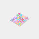 Ce bloc-notes Post-It a une conception rétro des années 1970 de fleurs qui se chevauchent en rouge, bleu, violet, jaune, orange et rouge.