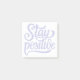 Cette oeuvre d'art comporte une phrase encourageant quelqu'un à rester positif.