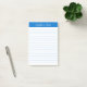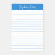 Script Medium Blue Lined Notes personnalisées Ces notes postales personnalisables sont simples pour une utilisation quotidienne ou l'envoi d'une note formelle à quelqu'un de votre bureau ou bureau. Vous pouvez également choisir une variété de couleurs dans notre boutique pour vos besoins de bureau à domicile. Personnalisez ces Notes de Post-it avec votre nom ou donnez comme cadeau et personnaliser avec vos amis ou les noms de famille afin qu'ils puissent les utiliser à leur domicile ou au bureau.
