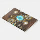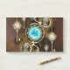 Turquoise lenses with antique watch with brass gears and golden keys on rusty, brown background. Steampunk style.