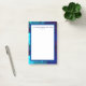 Un bloc-notes avec un design moderne artistique abstrait de blocs de couleur en turquoise, bleu et violet avec des accents turquoises, vert et bleu cobalt. Le nom et les notes personnalisés sont présentés sur un simple arrière - plan blanc avec un cadre bleu et turquoise. Personnalisez-vous en utilisant les champs fournis ou utilisez le bouton "message" pour contacter le concepteur pour obtenir de l'aide.