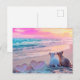 Postale Amour de chien sur la plage, carte coeurs