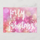 NewParkLane - Carte postale, avec citation amusante 'Quarante & Fantastique' dans une typographie script tendance, sur un fond rose scintillant glamour.