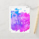 Voici notre "Carte d'anniversaire aquarelle", ornée d'un mélange charmant de couleurs aquarelles violettes, roses et bleues. Le message sincère "Joyeux Anniversaire" orne le devant de la carte, ajoutant une touche de chaleur et de joie à vos vœux d'anniversaire. Conçue avec du papier de haute qualité et une attention aux détails, cette carte est parfaite pour envoyer des vœux d'anniversaire sincères à vos amis et proches. Imprégnez-vous des teintes enchanteresses du fond aquarelle et rendez leur anniversaire encore plus spécial avec notre "Carte d'anniversaire aquarelle".