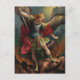 Le portrait coloré et dramatique de saint Michel l'Archange le montre dans la bataille avec Satan et les forces du mal. La peinture de Guido Reni est réinterprétée dans ce chromolithographe victorien affichant des couleurs brillantes contre un arrière - plan menaçant de nuages et de feu. Le revers de cette carte révèle une prière à saint Michel en espagnol.