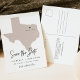 Cette carte postale à thème de voyage, à l'exception de la date, est dotée d'une carte texane et d'un support de carte postale. Changez facilement les couleurs et déplacez le coeur pour mettre en valeur votre destination. Modifiez le libellé *most* pour répondre à vos besoins et ajoutez facilement un message spécial à l'arrière de l'invitation.
