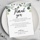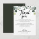 Cet eucalyptus verdoyant vous remercie la carte de réception est parfait pour un mariage élégant. Placez ces cartes à la table de chaque invité à la réception de votre mariage. Personnalisez la carte avec vos noms et un message de remerciement spécial.