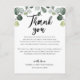 Cet eucalyptus verdoyant vous remercie la carte de réception est parfait pour un mariage élégant. Placez ces cartes à la table de chaque invité à la réception de votre mariage. Personnalisez la carte avec vos noms et un message de remerciement spécial.
