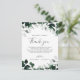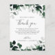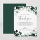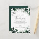 Cette carte verte émeraude, merci à la réception, est parfaite pour un mariage boho. Le design élégant et rustique présente des feuilles d'aquarelle vert foncé moody et des eucalyptus aux tons bohèmes modernes. Placez ces cartes à la table de chaque invité à la réception de votre mariage. Personnalisez la carte avec vos noms et un message de remerciement spécial.