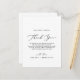 Cette délicate calligraphie, grâce à la carte de réception, est parfaite pour un mariage moderne. Le design minimaliste romantique présente une belle et élégante typographie noire sur un arrière - plan blanc au look épuré et sobre. Placez ces cartes à la table de chaque invité à la réception de votre mariage. Personnalisez la carte avec vos noms et un message de remerciement spécial.