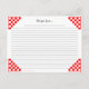 Cette jolie carte de recettes a un design rétro simple, avec des chèques de restaurant rouges et blancs. Un côté donne des équivalents de mesure de la recette pour aider la cuisson et la cuisine dans la cuisine. Le dos contient des lignes pour écrire vos recettes préférées et de l'espace pour ajouter votre nom ou texte personnalisé.