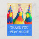Après la fête, envoyez une carte de remerciement amusante avec ces perroquets de fête. S'accorde avec tous les articles de la collection Fournitures d'anniversaire avec perroquets en chapeaux de fête. Divertissant pour tous les âges. Photo et conception Christine Greenspan. Graphiques de chapeaux de fête sous licence.