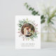 Cette carte de remerciement présente de l'eucalyptus aquarellé, des feuilles vertes, des baies rouges, des branches de pin avec une photo circulaire. Pour une personnalisation plus avancée de ce design, veuillez cliquer sur le lien "personnaliser davantage". Des articles assortis sont également disponibles.