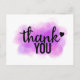 Cette carte de remerciement présente un design typographique simple mais efficace, avec du texte noir et un cœur noir sur un fond texturé de couleur violette. Une carte élégante à envoyer à un ami ou à un être cher.