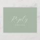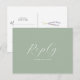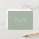 Conçue avec élégance pour s'associer à notre papeterie de mariage à l'aquarelle lavande, cette carte de réponse est l'incarnation même d'une romance botanique. Elle présente des brins minimalistes de fleurs de lavande. Cette carte postale offre judicieusement un espace dédié aux invités pour confirmer leur présence et ajouter leur demande de chanson. Le mot "Réponse" est inscrit dans une typographie script élégante sur un fond vert sauge. Idéal pour les mariages rustiques et de jardin, cette pièce est un témoignage de l'art unique de Victoria Grigaliunas de Do Tell A Belle. Découvrez la papeterie assortie et plus encore sur www.zazzle.com/dotellabelle.