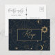 Conçue pour aller avec notre collection Mystique Céleste, cette carte de réponse personnalisable unique présente de beaux éléments célestes dorés sur un fond bleu marine foncé. Pour une personnalisation plus avancée de ce design, par exemple en changeant la mise en page, la police ou la taille du texte, veuillez cliquer sur le bouton "PERSONNALISER" ci-dessus. N'hésitez pas à me contacter pour toute question !