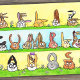 Trois rangées de lapins écrivent "Feliz Cumpleaños" avec leurs oreilles.