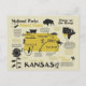 Carte artistique créée par NPS du Kansas, avec tous les parcs nationaux marqués, brièvement décrits et illustrés.