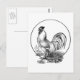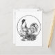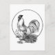 Élégante et complexe gravure vintage de coq du 19ème siècle, avec un oiseau noir et blanc debout sur des touffes d'herbe et de galets avec deux plus petits poulets debout dans l'arrière - plan. Nettoyé pour décorer n'importe quel objet de façon élégante et moderne. Ajoutez votre propre texte à cette belle poule si vous voulez ou simplement profiter de l'art victorien noir et blanc détaillé.