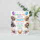 Cartes d'invitation pour une fête d'anniversaire pour chien. 11 ans (ou modifier pour n'importe quel âge). Pour garçon ou fille. Illustration d'un chiot heureux et souriant conçue avec des confettis et des ballons entourés de races de petits chiens populaires telles que le shih tzu, le carlin, le maltais, le chihuahua, le caniche et le beagle. Tous les textes sont modifiables avec le nom de l'enfant, l'âge, l'heure de la fête, l'adresse et la réponse RSVP.