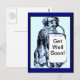 Obtenez une carte de bien-être avec un chien tenant une corbeille de fruits.
