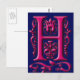 Postale Carte Monogramme H Fuschia Navy initiale