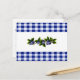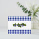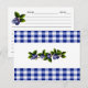 Cette Carte à Recettes de bleuets présente des bleuets et des feuilles dessinés à la souris sur un arrière - plan en vichy bleu et blanc.