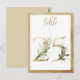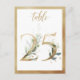 Belle carte de numéro de table avec un motif botanique - une aquarelle illustrant le feuillage verdoyant et les numéros d'effet doré. Tableau 25. Veuillez vérifier tous les numéros disponibles
