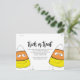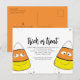 Une carte postale tendance et élégante pour Halloween, à petit budget. Avec un code QR comprenant une carte et une icône de directions. "Des friandises ou un sort" avec ces cute, drôles et fantaisistes corns de bonbons pour Halloween. Ces adorables petits corns de bonbons sont heureux et prêts à ajouter de l'amusement à vos festivités d'Halloween. Des bonbons orange, jaune et noir fantaisistes avec des yeux souriants dessinés et des visages souriants sont mignons et peuvent être personnalisés à votre goût. Ce design présente une fête d'Halloween fantaisiste et mignonne en octobre, des corns de bonbons "des friandises ou un sort", une typographie minimaliste simple, orange noir jaune, octobre Halloween simple, déguisement pour enfants adultes famille Halloween, invitation à une fête d'anniversaire Halloween, visage drôle amusant et idiot, invitations à une fête d'Halloween, laura lacina.